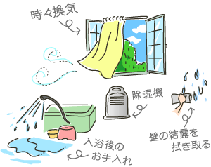 入浴後はきっちりフタをする、窓を開けて換気扇をしばらく回す、